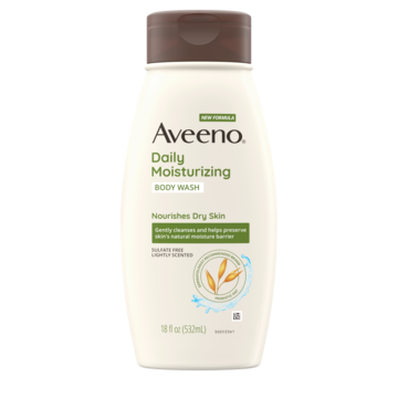 Aveeno® Daily Moisturizing Body Wash with soothing prebiotic oat and a light scent nourishes dry skin. This creamy body wash gently cleanses and helps preserve skin's natural moisture barrier. 92% agreed this wash left their skin feeling nourished while they showered. This sulfate-free, allergy tested wash contains nourishing oat to help lock in moisture, and gently cleanses dry, sensitive skin to reveal smoother, softer skin long after you shower.