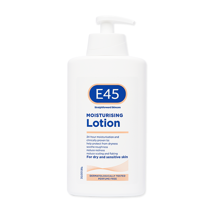 E45 Moisturising Lotion is a light, perfume free formulation that can be used all over your body, face and hands to give long-lasting care for dry and sensitive skin. It contains occlusive ingredients that help smoothen & soften the skin and maintain the skin moisture at an optimum level. The gentle formulation is suitable for the whole family including babies. Suitable for daily use on dry and sensitive skin.