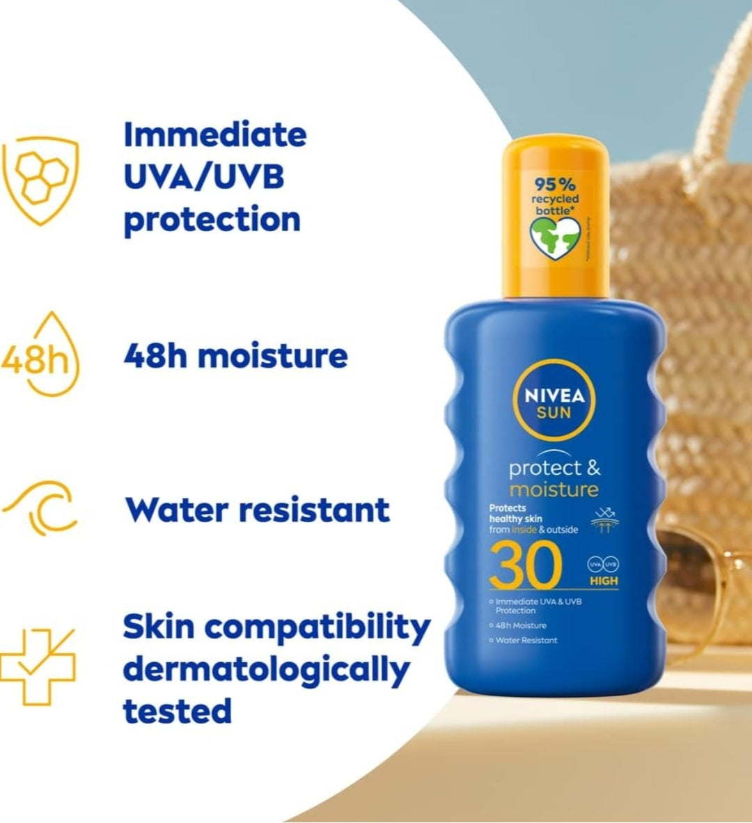 Immediate protection: NIVEA SUN moisturising cream spray offers immediate effective protection against UVA and UVB rays, sunburn, and premature skin ageing