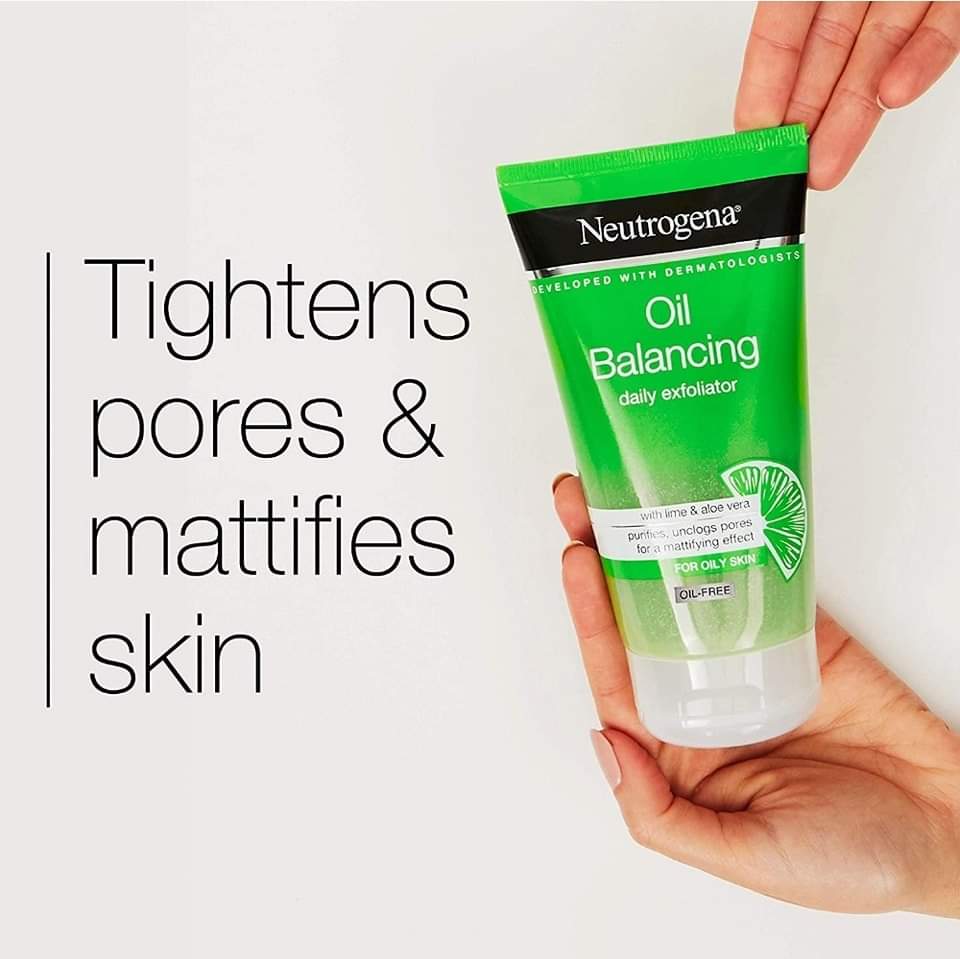 Oil Balancing Daily Exfoliator with lime and aloe vera has been developed with dermatologists to tighten pores and mattify skin.