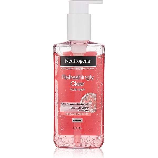 NEUTROGENA® Refreshingly Clear facial wash with pink grapefruit and vitamin C is an uplifting daily face cleanser. Developed with dermatologists for blemish-prone skin, the face wash gel gently cleanses to help prevent imperfections, without overdrying skin for a clearer, more radiant complexio.0