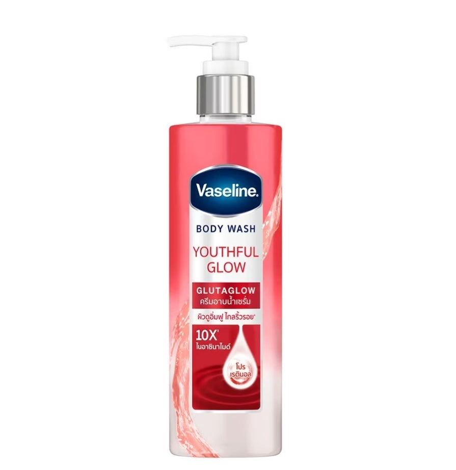 Vaseline Body Wash Youthful Glow Glutaglow GlutaGlowTM Technology with 10X Niacinamide for radiant skin, even skin tone, and a glowing appearance. Enriched with Glutathione for Skin Nourishment. Blended with a fragrance filled with charm and grace from muguet, along with the freshness of jasmine and pear. - Nourishing and youthful skin - 10X Niacinamide, Pro-Retinol - Pro-Retinol helps shed old skin cells and promotes skin cell renewal. Indulge now lather your body by rubbing before washing off. Vaseline Body Wash Youthful Glow Glutaglow Gluta Glow Technology with 10X Niacinamide for radiant skin, even skin tone, and a glowing appearance. Enriched with Glutathione for Skin Nourishment.